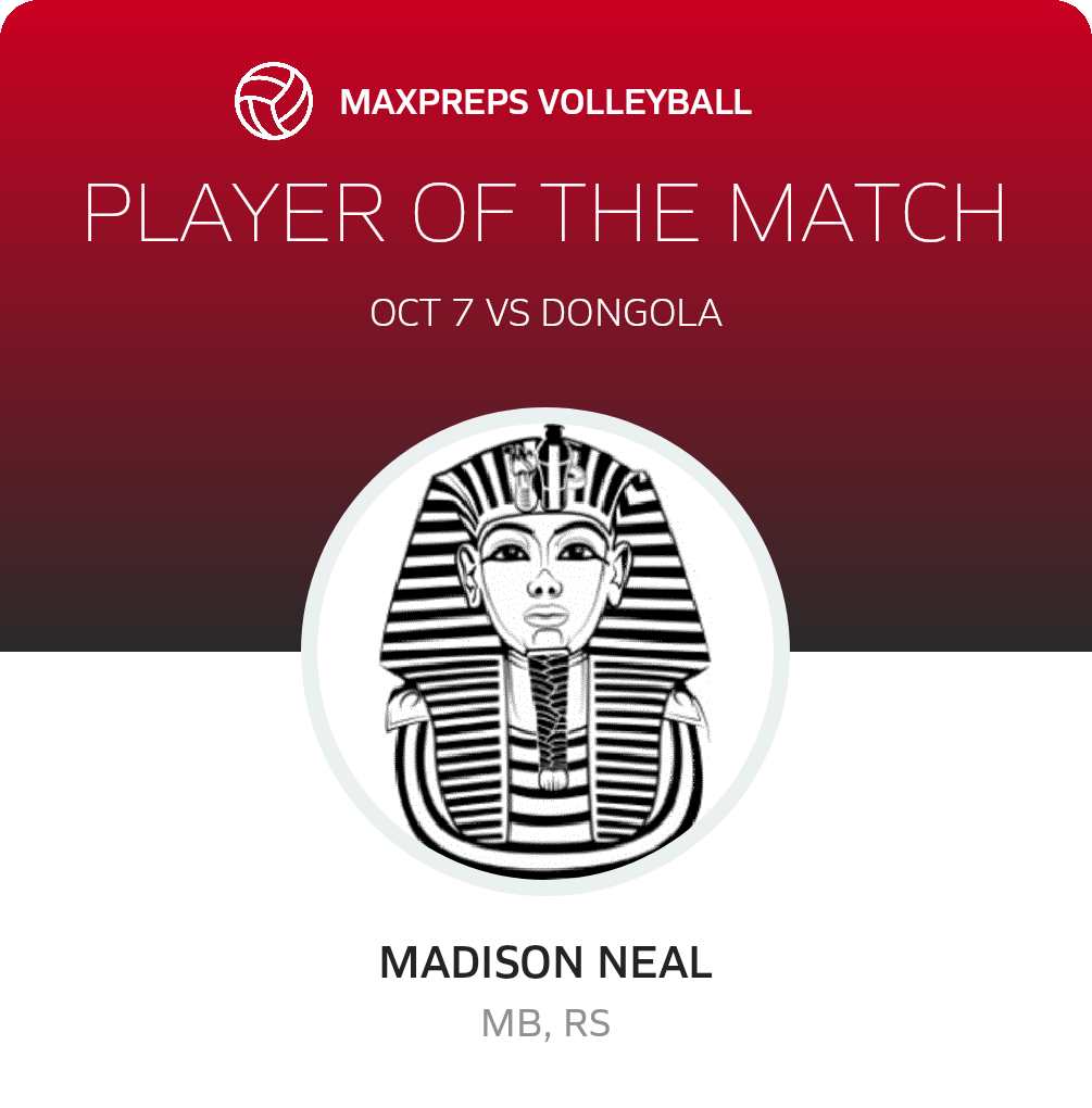 October 7, 2025: Tamms, IL 62988 In Tuesday's league match, the Egyptian Pharaohs (Tamms, IL) volleyball squad tipped the visiting Dongola Demons (Dongola, IL), by a final score of 2-1.