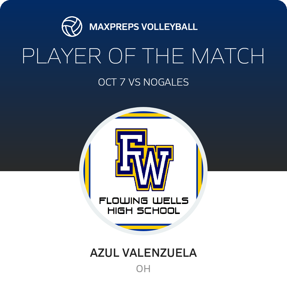 In their next game, the Caballeros face the Nogales Apaches (Nogales, AZ) in a 5A - Southern test, on Thursday, October 9. Flowing Wells will attempt to advance on its 3-10 season record. The Apaches go into the test with a 2-14 record after their 3-2 league win over Flowing Wells (Tucson, AZ).