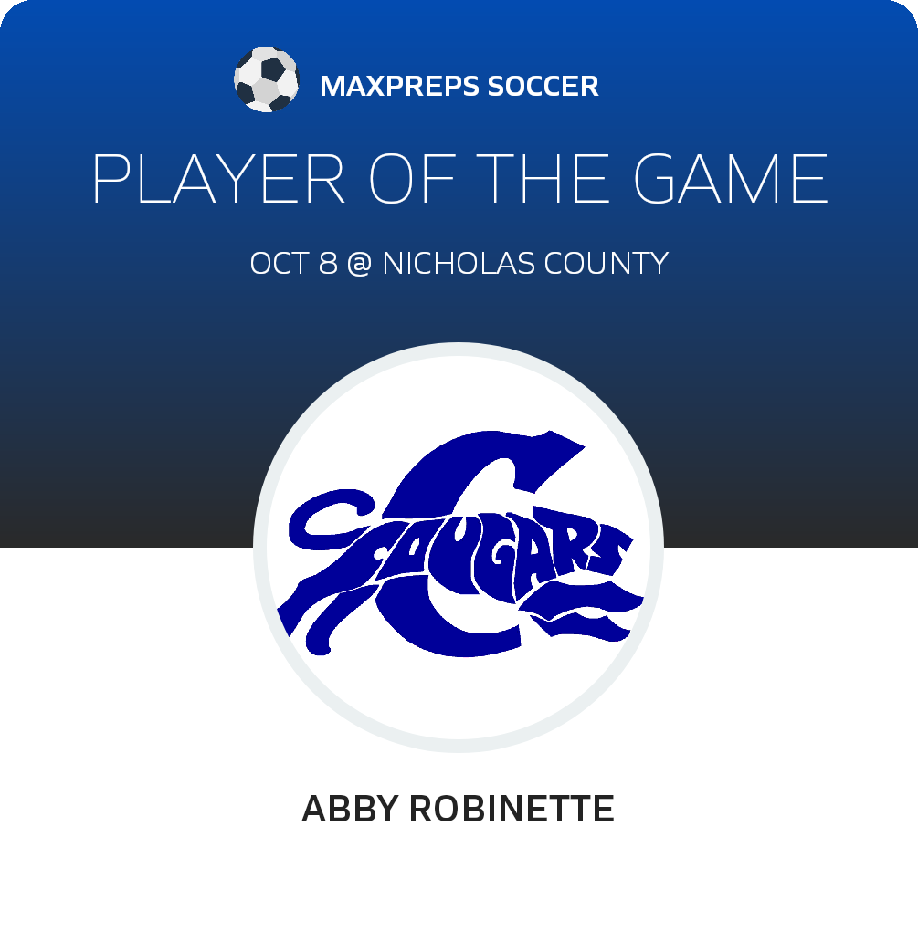 The Cougars now sport a 10-7 record. They play next when they host Poca for a non-league match on Thursday, October 13.