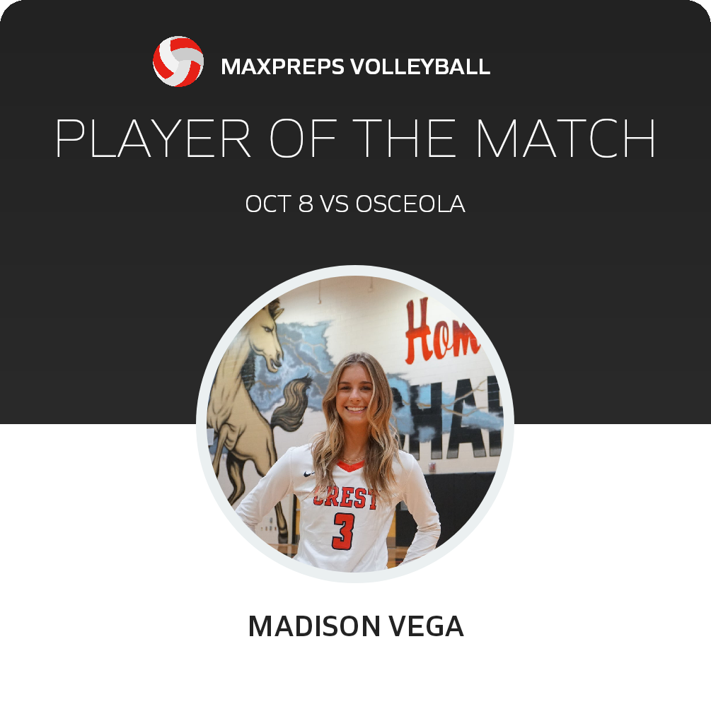 October 8, 2022: Dover, FL 33527 The Strawberry Crest Chargers volleyball team (Dover, FL), was dropped 2-0 in Saturday's non-league challenge with the visiting Osceola Warriors (Seminole, FL)