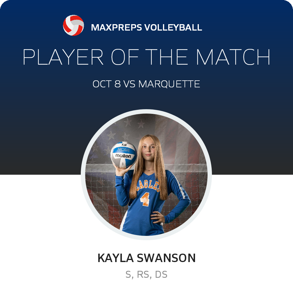 Congratulations to #4 Kayla Swanson for being selected the Stephenson Volleyball Player of the Match.