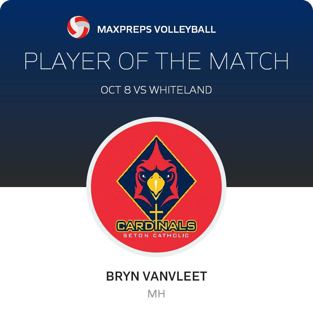 October 8, 2022: Whiteland, IN 46184 Seton Catholic Cardinals (Richmond, IN) backers left the game in high spirits Saturday as they observed their volleyball squad top the host Whiteland Warriors (Whiteland, IN), 2-0 in a non-league match.