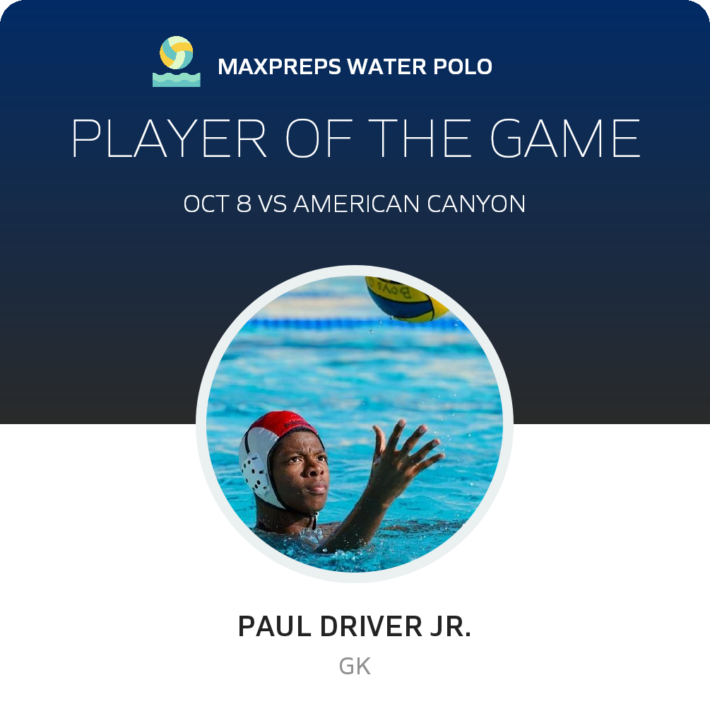 Congratulations to #1 Paul Driver Jr. for being selected the Pinole Valley Water Polo Player of the Game.