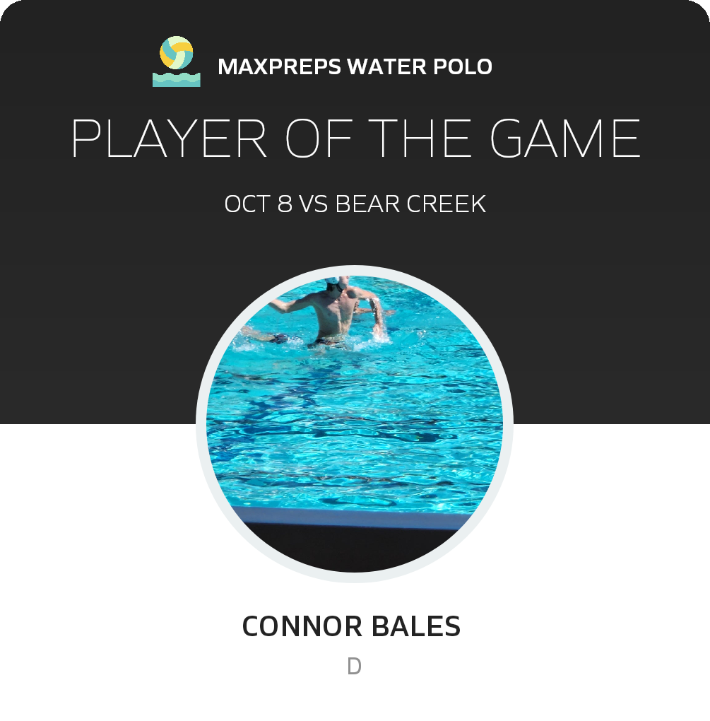 Congratulations to #17 Connor Bales for being selected the Roseville Water Polo Player of the Game.