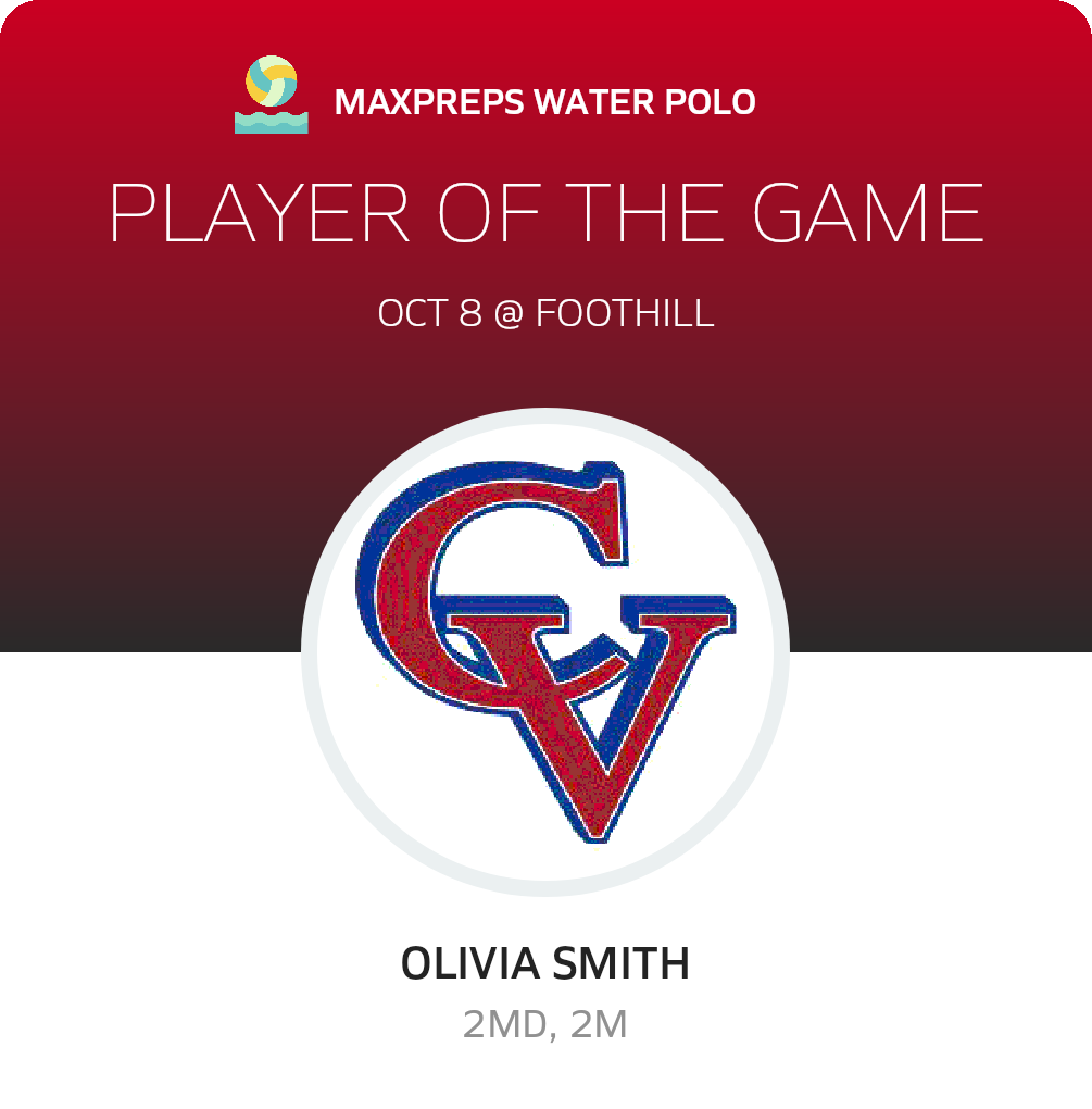 Congratulations to #3 Olivia Smith for being selected the Clayton Valley Charter Girls JV Water Polo Player of the Game.