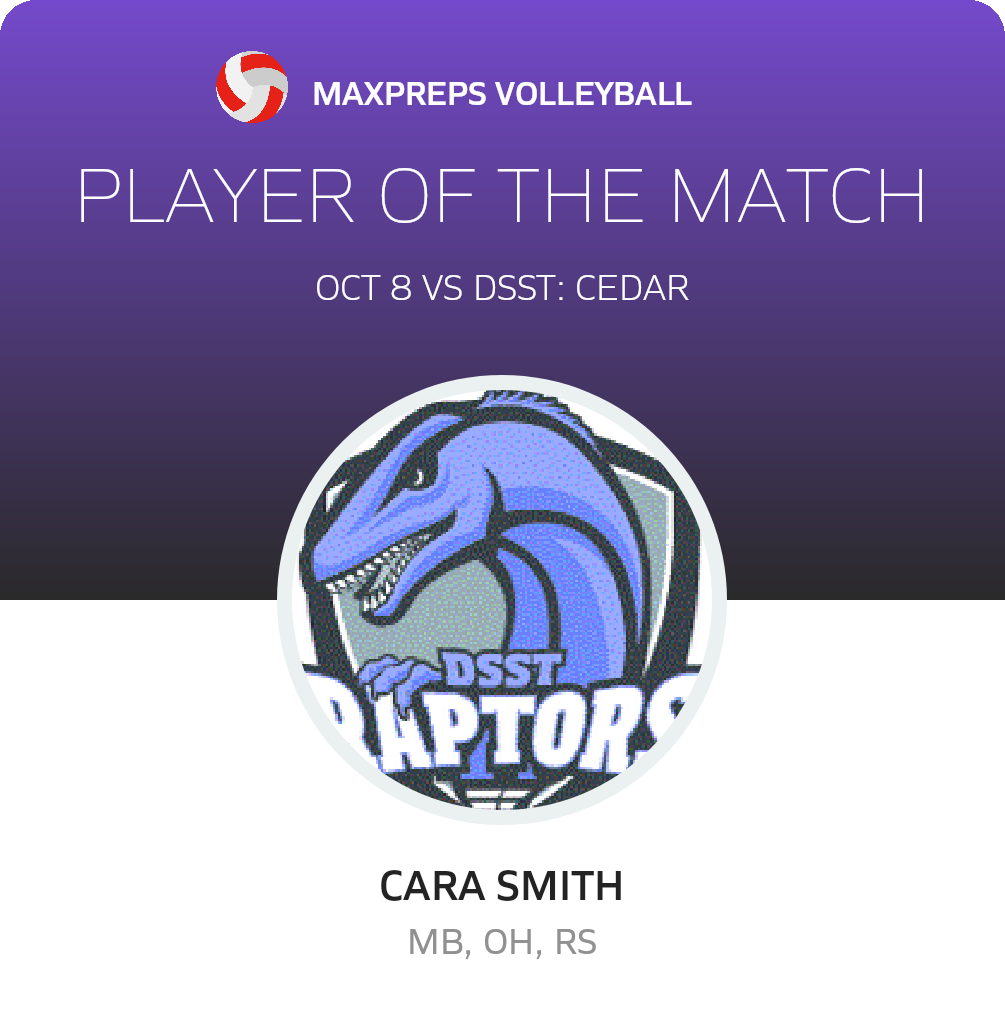 Next up, the Raptors battle the DSST: Conservatory Green Hornets (Denver, CO) in a 3A City match, on Wednesday, October 9. DSST: Green Valley Ranch will attempt to move on its 11-4 season record. The Hornets enter the match with a 8-8 record after their 3-0 league win over DSST: Cedar (Denver, CO).