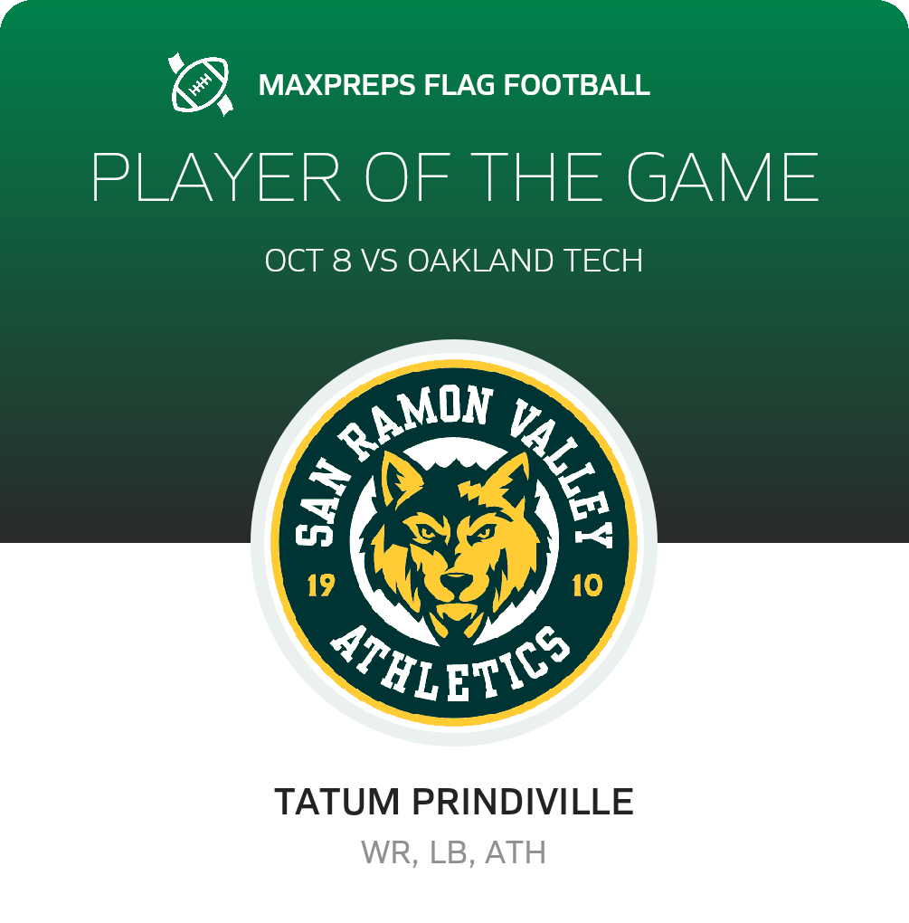 October 8, 2025: Danville, CA 94526 The Oakland Tech Bulldogs flag football team (Oakland, CA), was crushed 39-0 in Wednesday's non-league bout with the host San Ramon Valley Wolves (Danville, CA)