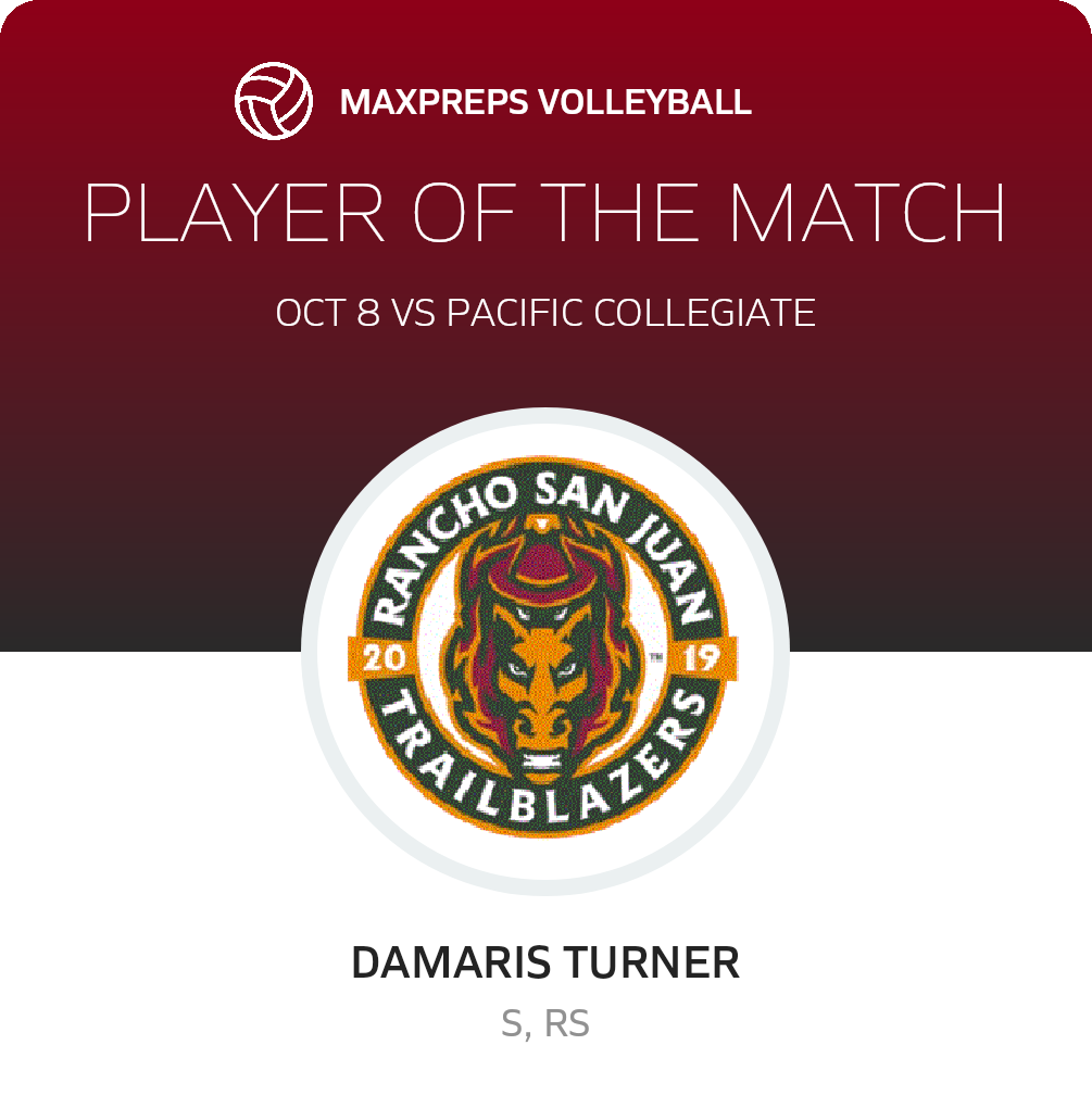 Congratulations to #5 Damaris Turner for being selected the Rancho San Juan Volleyball Player of the Match.