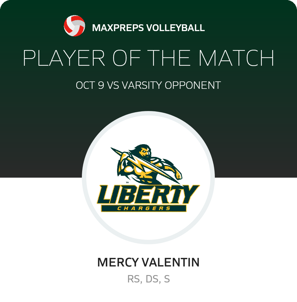 Congratulations to #26 Mercy Valentin for being selected the Liberty Volleyball Player of the Match.