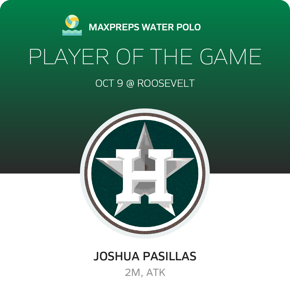 Congratulations to #2 Joshua Pasillas for being selected the Hoover Water Polo Player of the Game.
