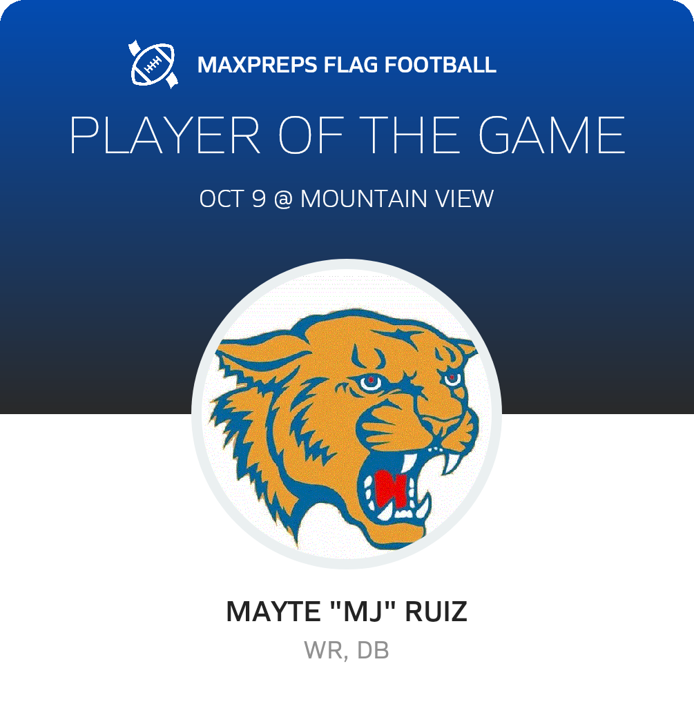 October 9, 2025: Tucson, AZ 85742 The Mountain View Mountain Lions flag football team (Tucson, AZ), was crushed 41-0 in Thursday's league bout with the visiting Casa Grande Cougars (Casa Grande, AZ)