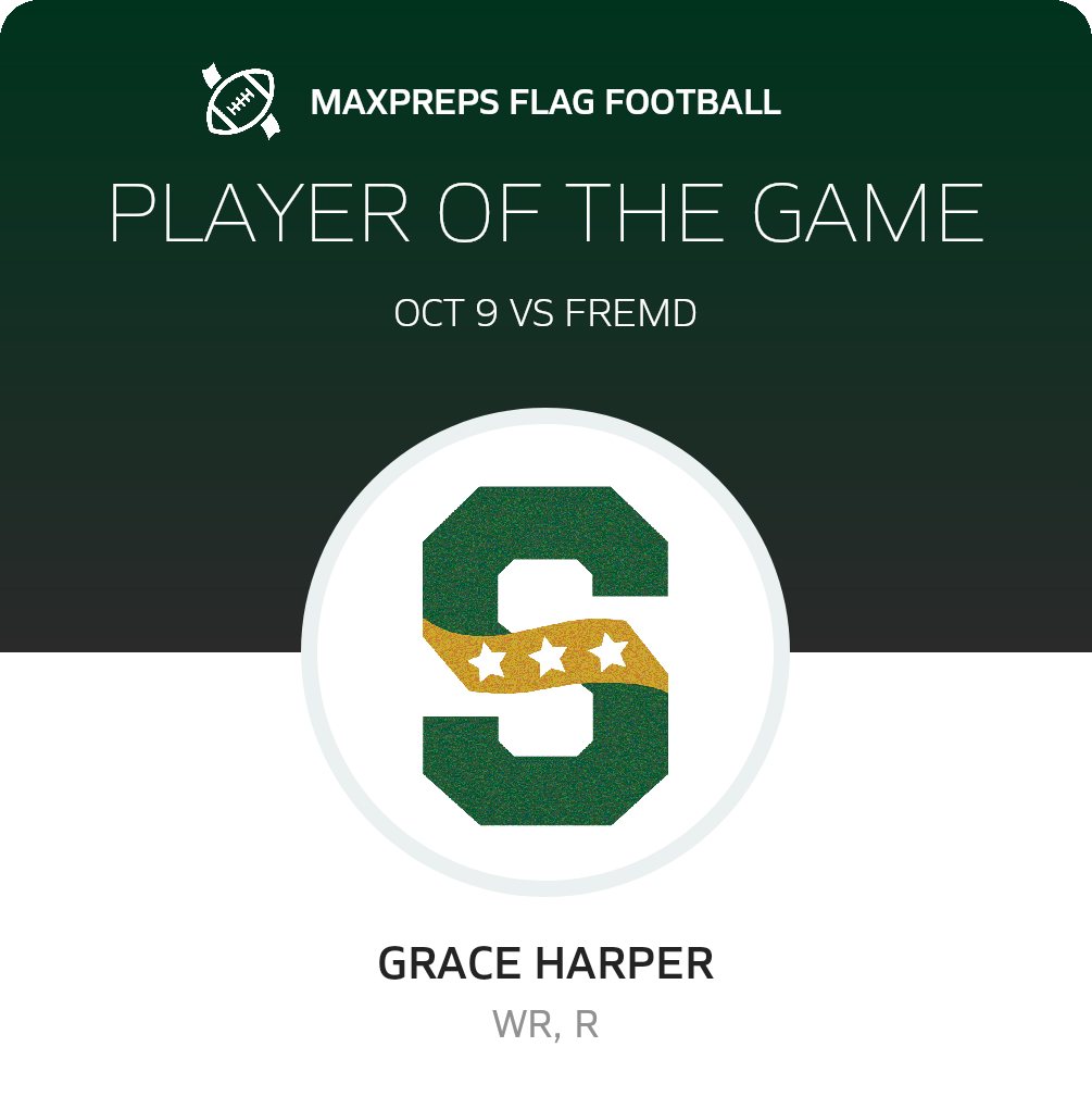 Congratulations to #14 Grace Harper for being selected the Stevenson Girls Flag Football Player of the Game.