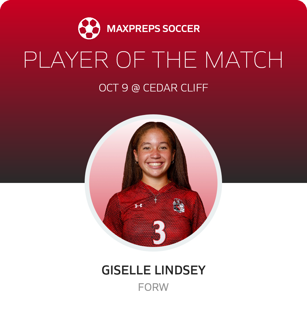 Congratulations to #3 Giselle Lindsey for being selected the Cumberland Valley Girls Soccer Player of the Match.
