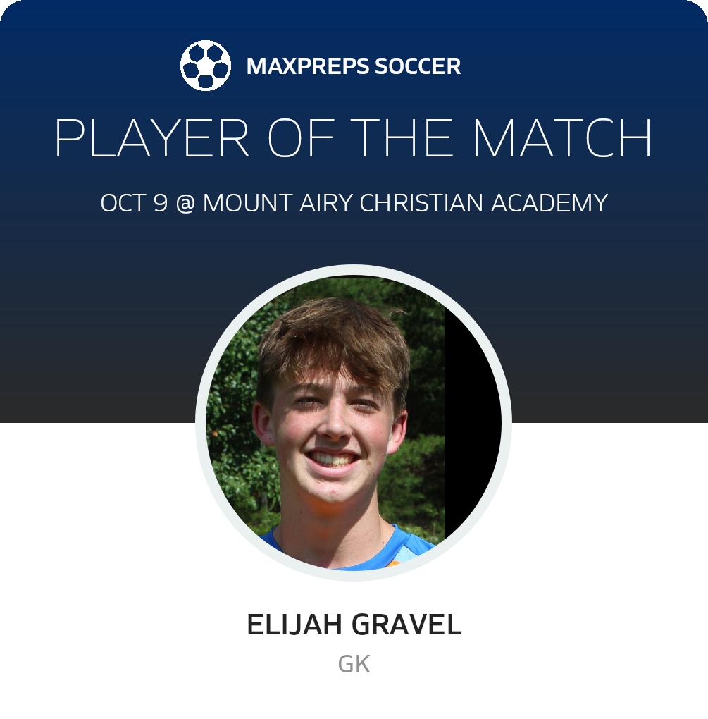 The Mount Airy Christian Academy (Mount Airy, MD) varsity soccer team won Thursday's home non-conference match against Calvary Baptist Church Academy (Glen Burnie, MD) by a score of 3-0.