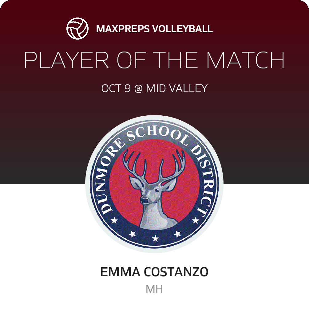Congratulations to #24 Emma Costanzo for being selected the Dunmore Volleyball Player of the Match.