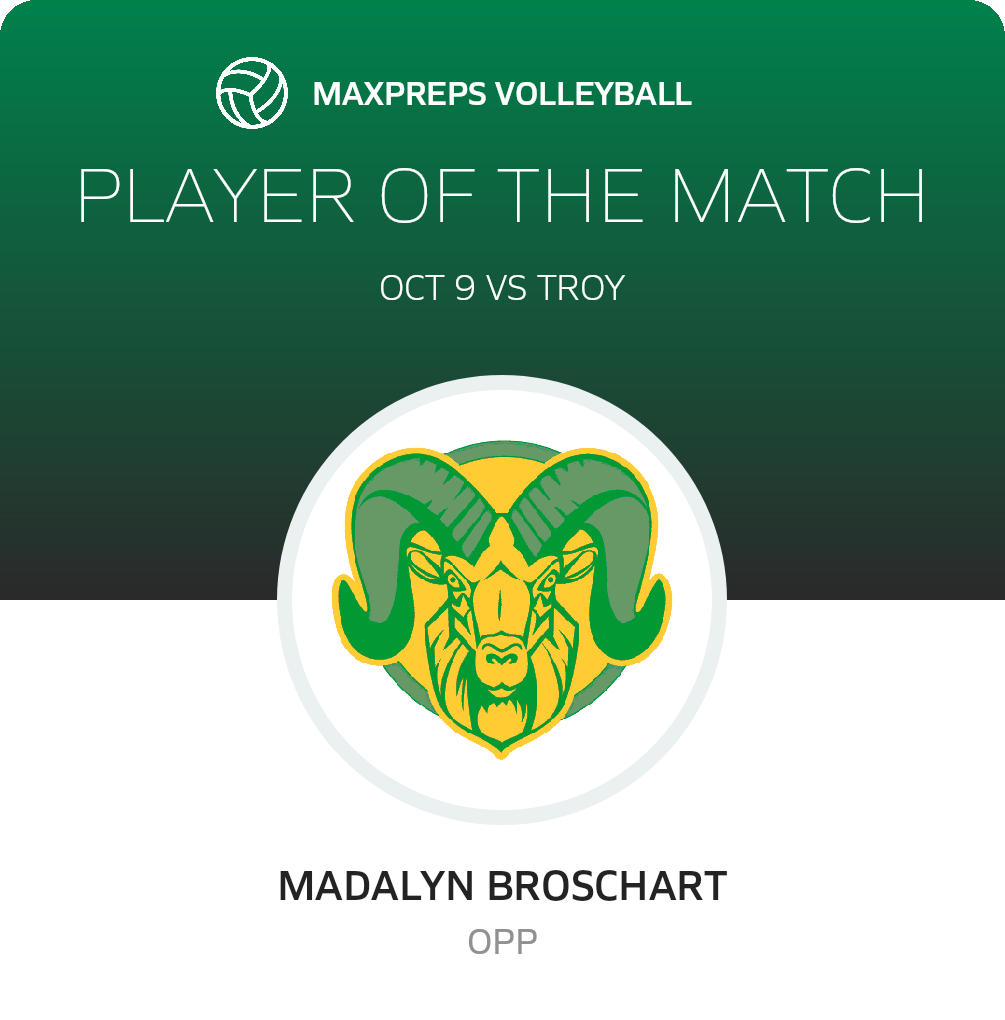 October 9, 2025: Wyalusing, PA 18853 The Troy Trojans volleyball squad scored 3 points and held the host Wyalusing Valley Rams to 0 in the Trojans league win on Thursday.
