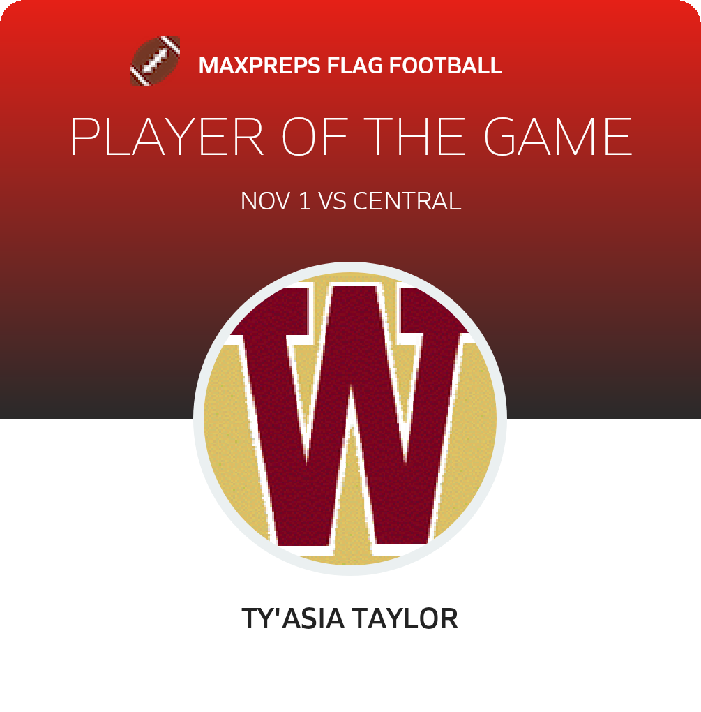 Congratulations to #19 Ty'Asia Taylor for being selected the Westside Girls Flag Football Player of the Game.