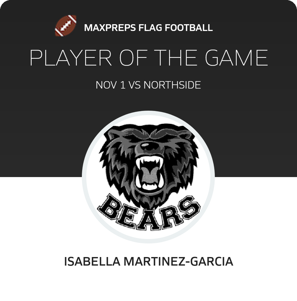 Congratulations to #6 Isabella Martinez-Garcia for being selected the Houston County Girls Flag Football Player of the Game.