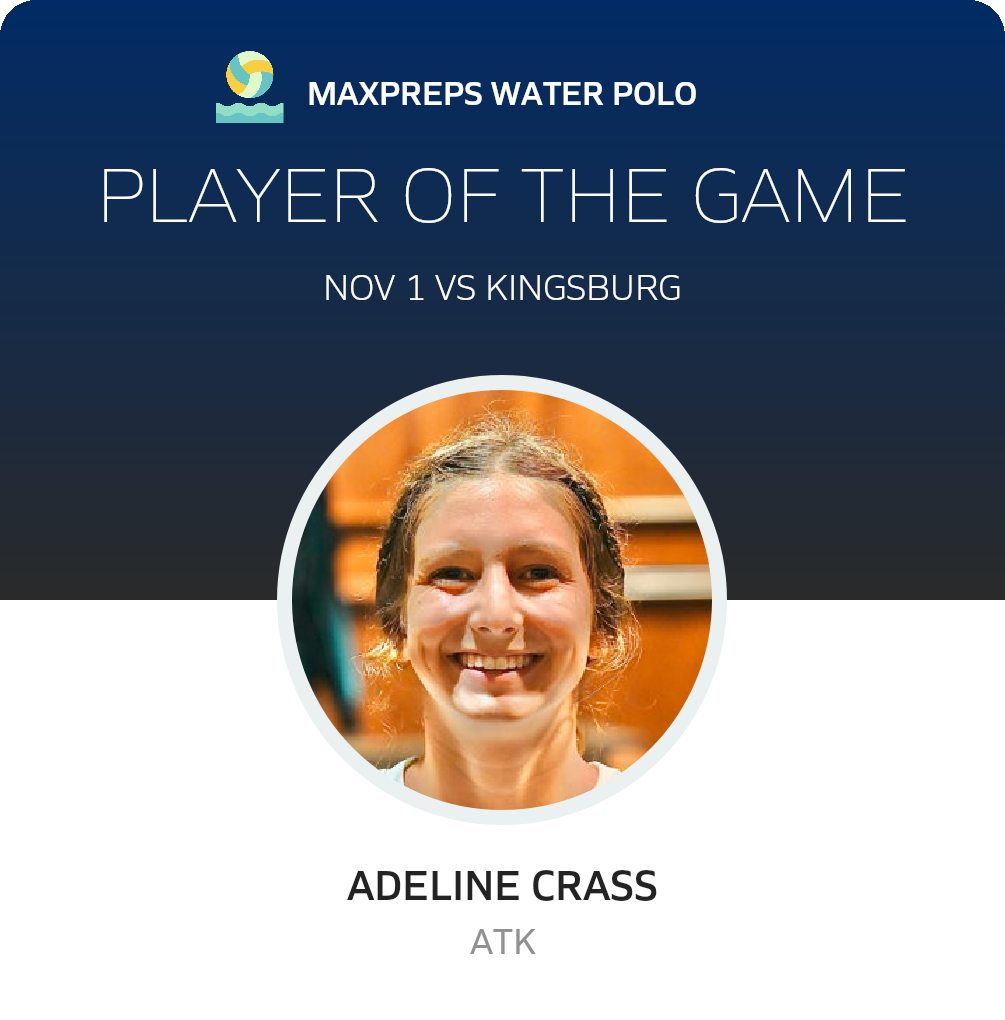 Congratulations to #8 Adeline Crass for being selected the Bullard Girls Water Polo Player of the Game.