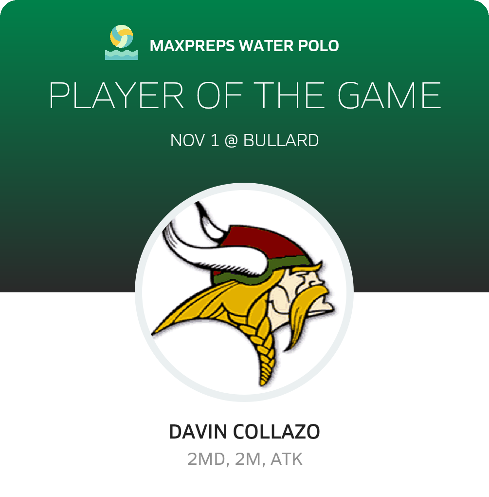 Congratulations to #11 Davin Collazo for being selected the Kingsburg Girls Water Polo Player of the Game.
