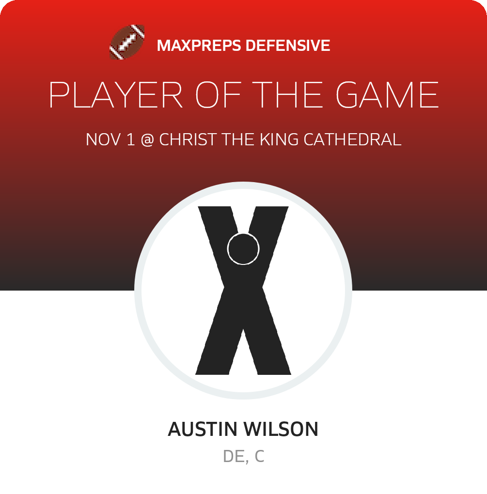 November 1, 2024: Lubbock, TX 79413 In Friday's league game, the Holy Cross Crusaders (Midland, TX) football team triumphed over the host Christ the King Cathedral Golden Lions (Lubbock, TX), by a score of 72-40.