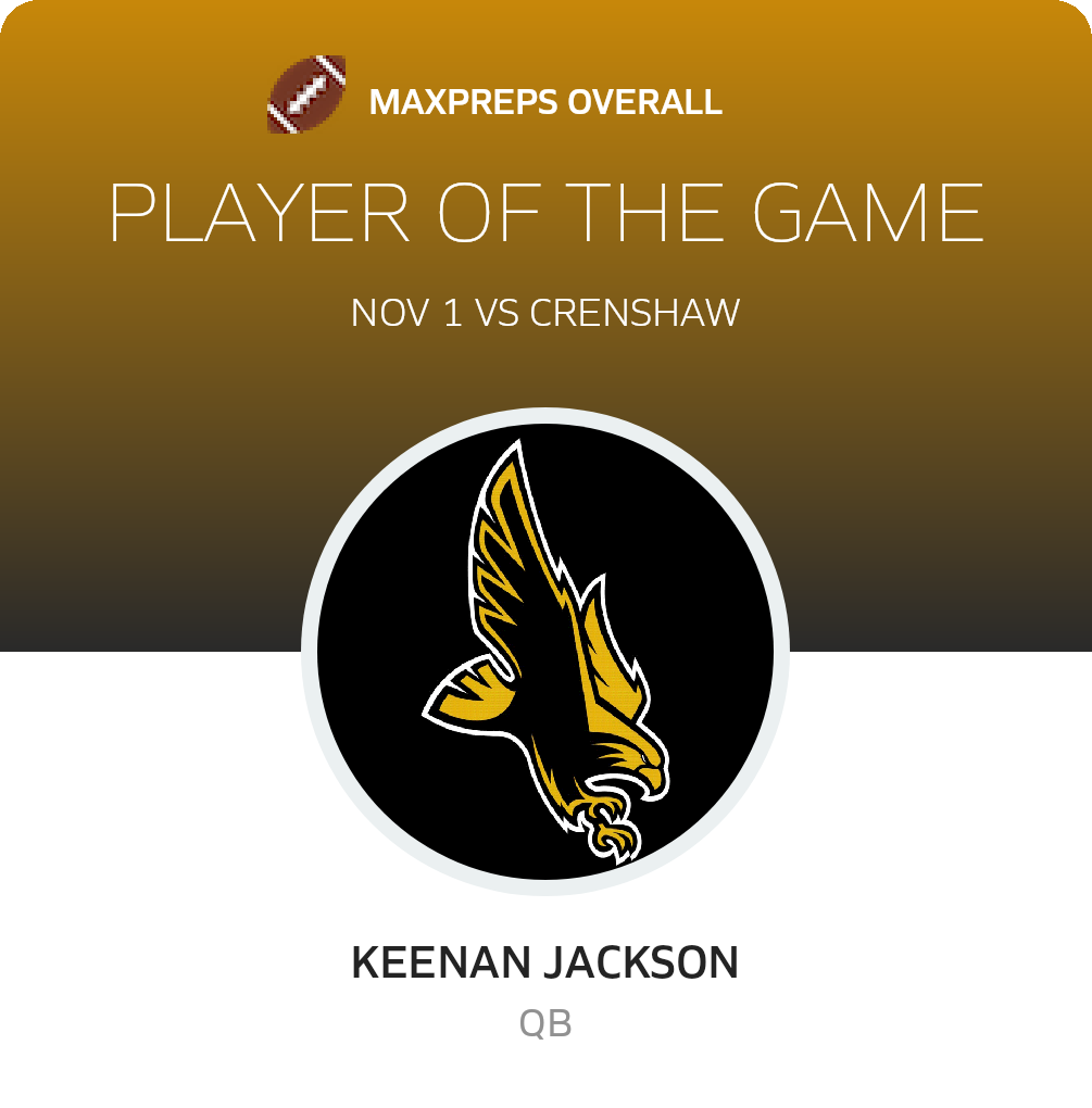 Congratulations to #7 Keenan Jackson (overall), #1 Jahmir Torres (offensive), #6 Anthony Torrence (defensive) and #27 Brandyn Brookens (special teams) for being selected the King/Drew Football Players of the Game.