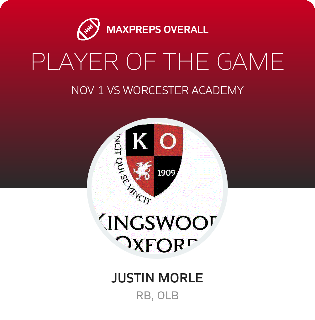November 1, 2025: West Hartford, CT 06119 The Kingswood Oxford Wyverns football squad scored 32 points and limited the visiting Worcester Academy Hilltoppers to 0 in the Wyverns league victory on Saturday.
