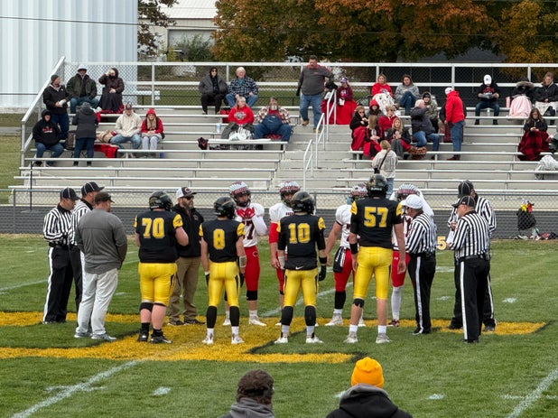 November 1, 2025: Nokomis, IL 62075 The crowd at Saturday's non-league contest between the Nokomis Redskins (Nokomis, IL) and the visiting Tuscola Warriors (Tuscola, IL), witnessed Nokomis's football squad knock off Tuscola by a tally of 28-19.