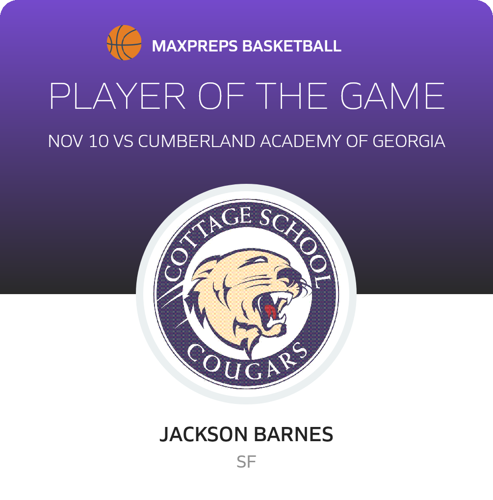 November 10, 2023: Roswell, GA 30075 The Cottage Cougars basketball team scored 68 points and held the visiting Cumberland Academy of Georgia Cyclones to 29 in the Cougars league triumph on Friday.