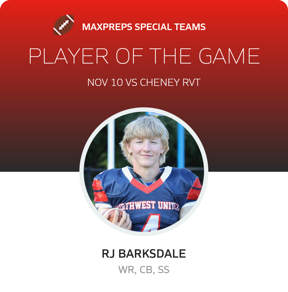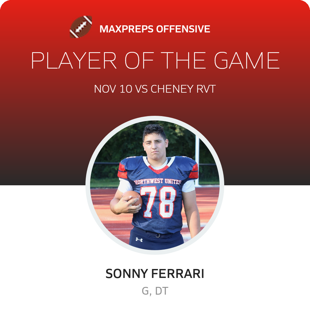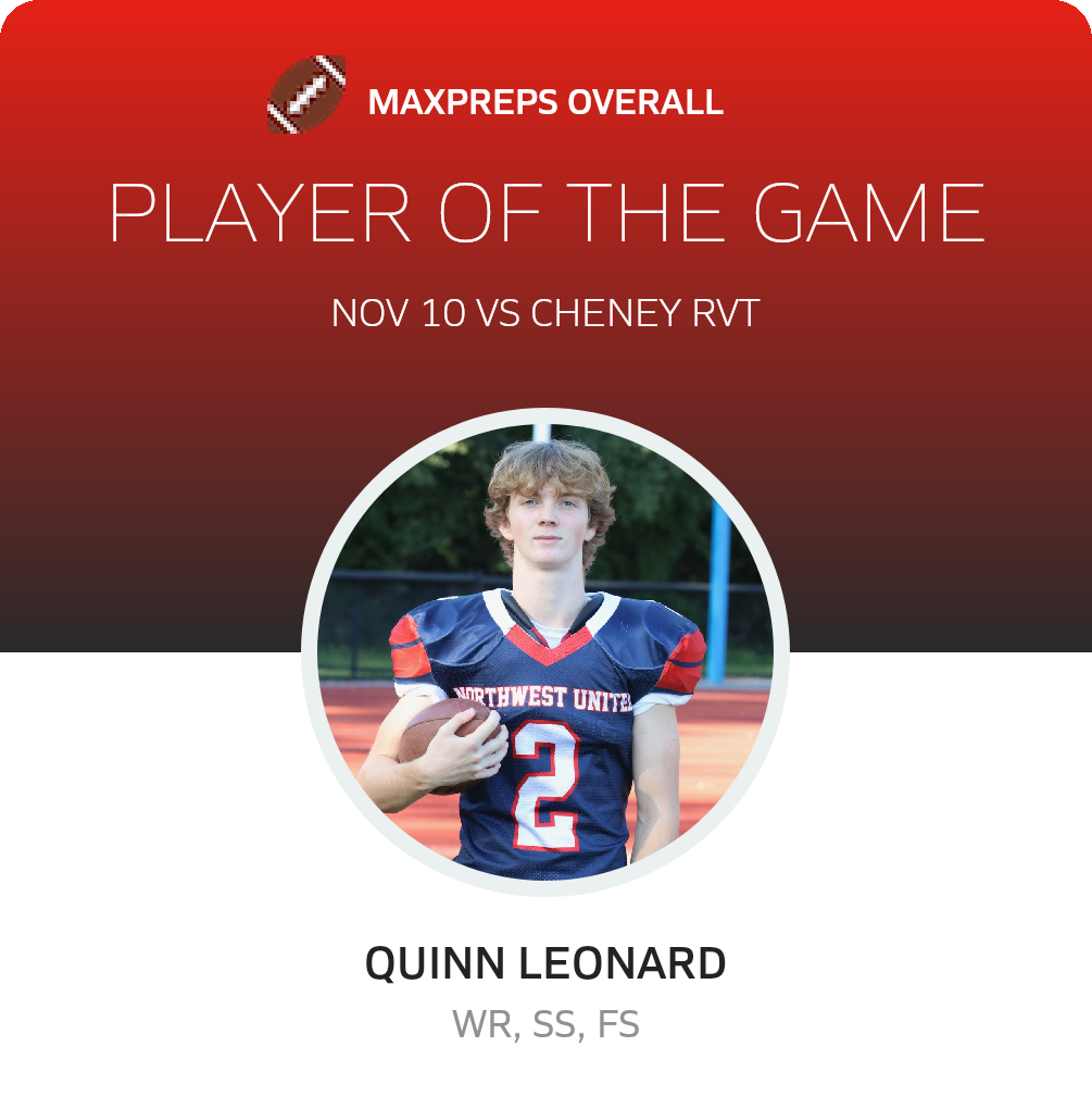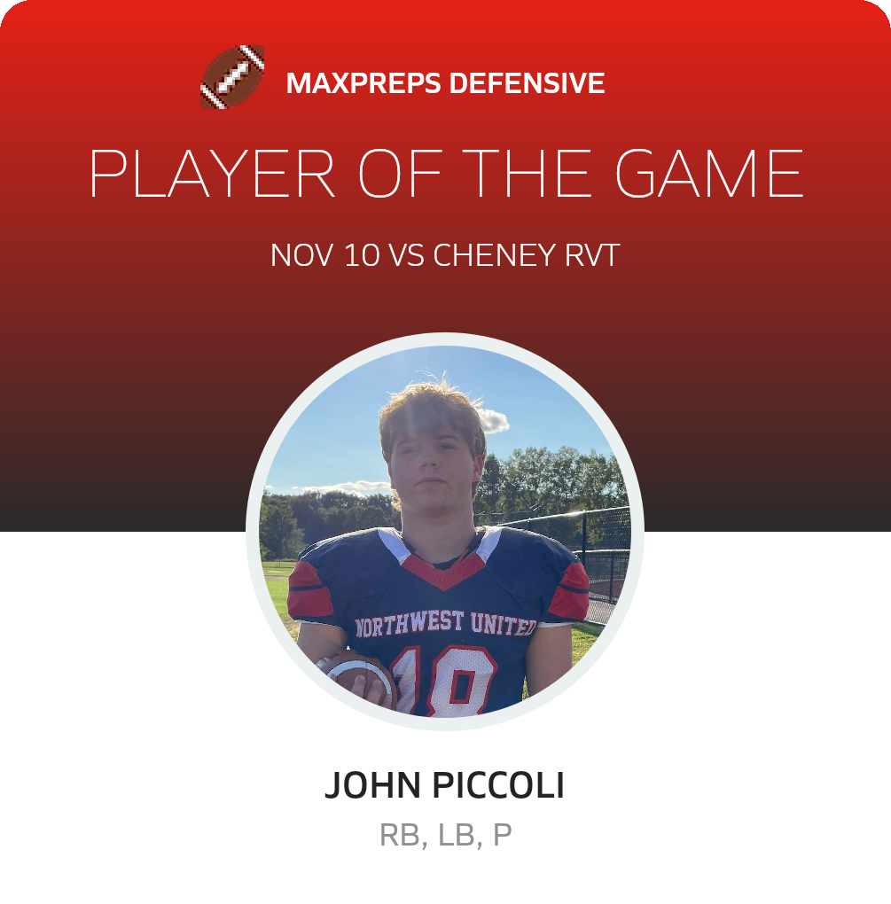Congratulations to #2 Quinn Leonard (overall), #78 Santino Ferrari (offensive), #18 John Piccoli (defensive) and #4 Ronald Barksdale (special teams) for being selected the Northwest United co-op [Wolcott RVT/Nonnewaug/Shepaug Valley/Lakeview] Football Players of the Game.