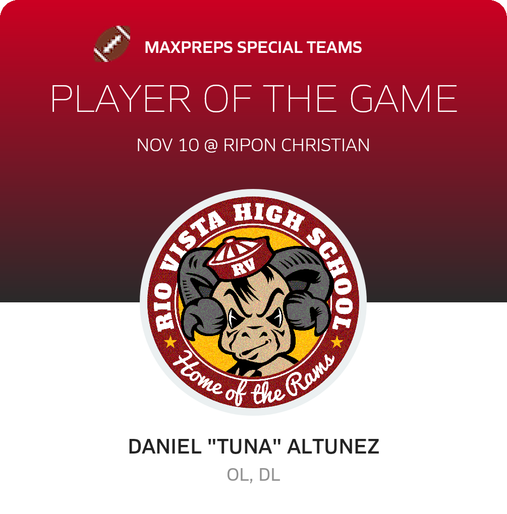 November 10, 2023: Ripon, CA 95366 The Ripon Christian Knights (Ripon, CA) football routed the visiting Rio Vista Rams (Rio Vista, CA), 42-0 in Friday's non-league bout.