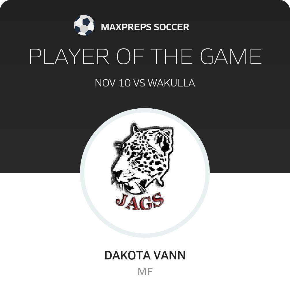 Congratulations to #11 Dakota Vann for being selected the West Florida Soccer Player of the Match.