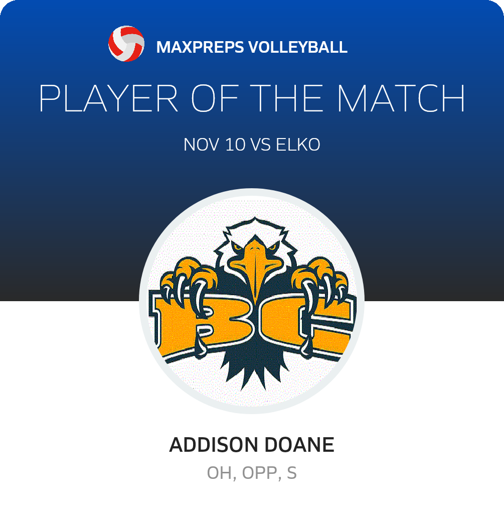 November 10, 2023: Boulder City, NV 89005 The Elko Indians volleyball team (Elko, NV), went down 3-0 in Friday's non-league challenge with the host Boulder City Eagles (Boulder City, NV)
