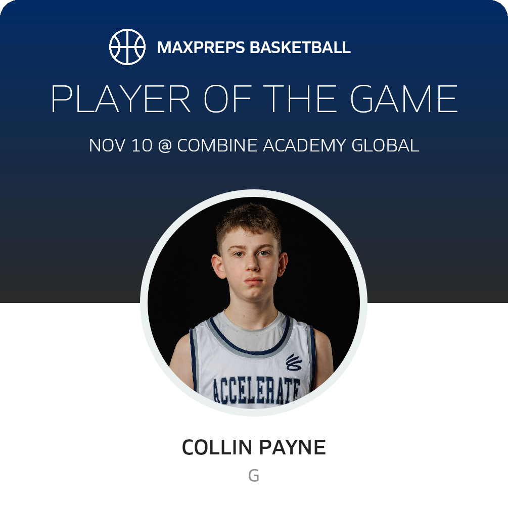 Congratulations to #30 Collin Payne for being selected the Accelerate Academy Basketball Player of the Game.