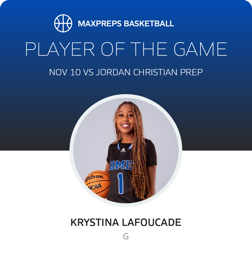 Congratulations to #1 Krystina LaFoucade for being selected the DME Academy Regional Girls Basketball Player of the Game.