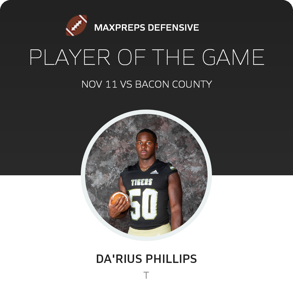 The Tigers now own a 10-0 record. They play next when they travel to Screven County for a non-league contest on Friday, November 18. Swainsboro will play a Gamecocks squad coming off a 35-28 non-league win over Crawford County (Roberta, GA). The Gamecocks record now stands at 9-1.