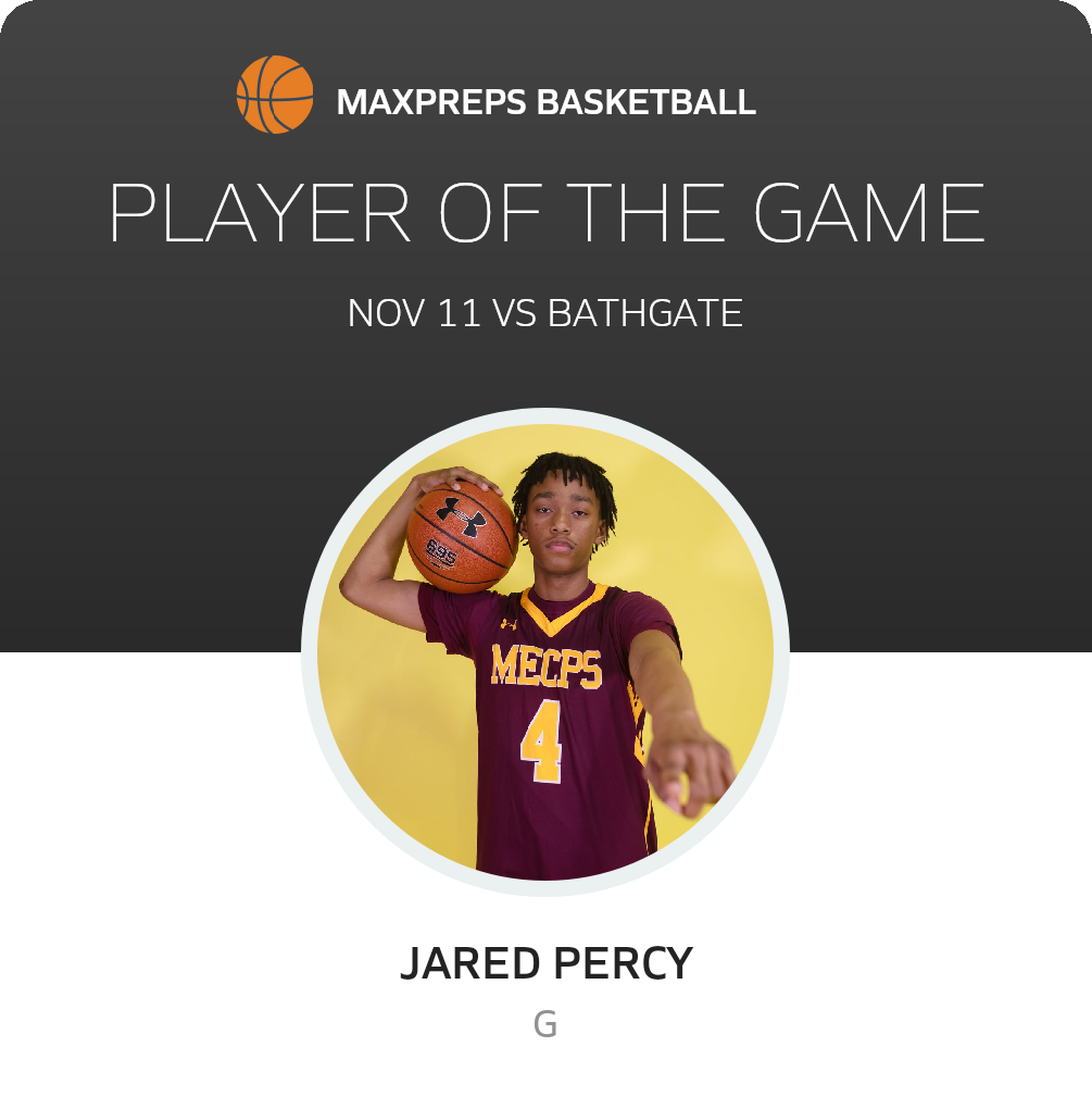 Congratulations to #4 Jared Percy for being selected the Medgar Evers College Prep Basketball Player of the Game.