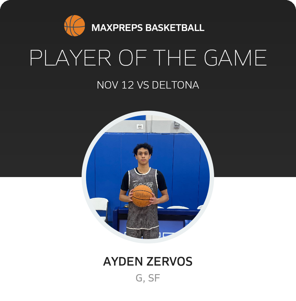 Congratulations to #11 AYDEN ZERVOS for being selected the DME Academy Blue Basketball Player of the Game.