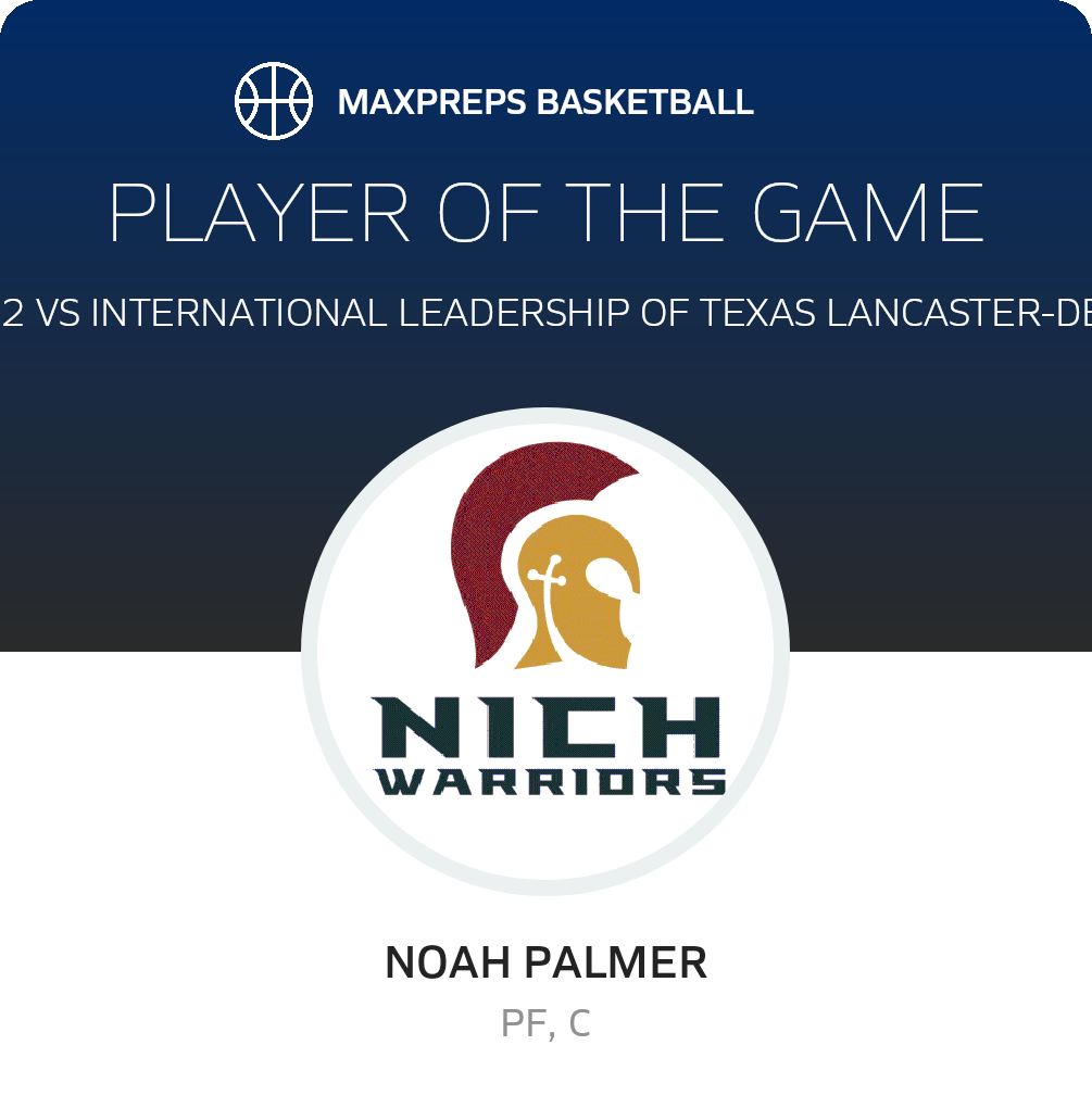 Congratulations to #15 Noah Palmer for being selected the Newman International Academy Basketball Player of the Game.