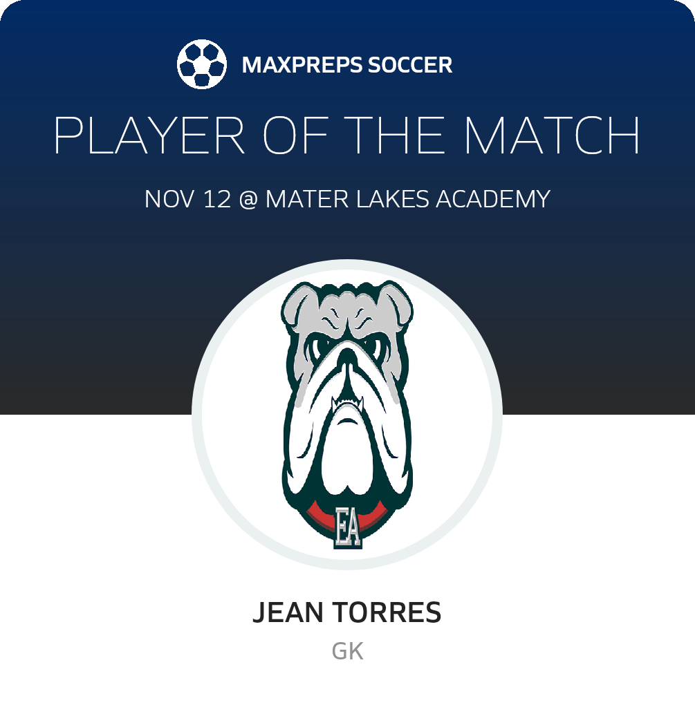 Congratulations to Jean Torres for being selected the Hialeah Educational Academy Soccer Player of the Match.
