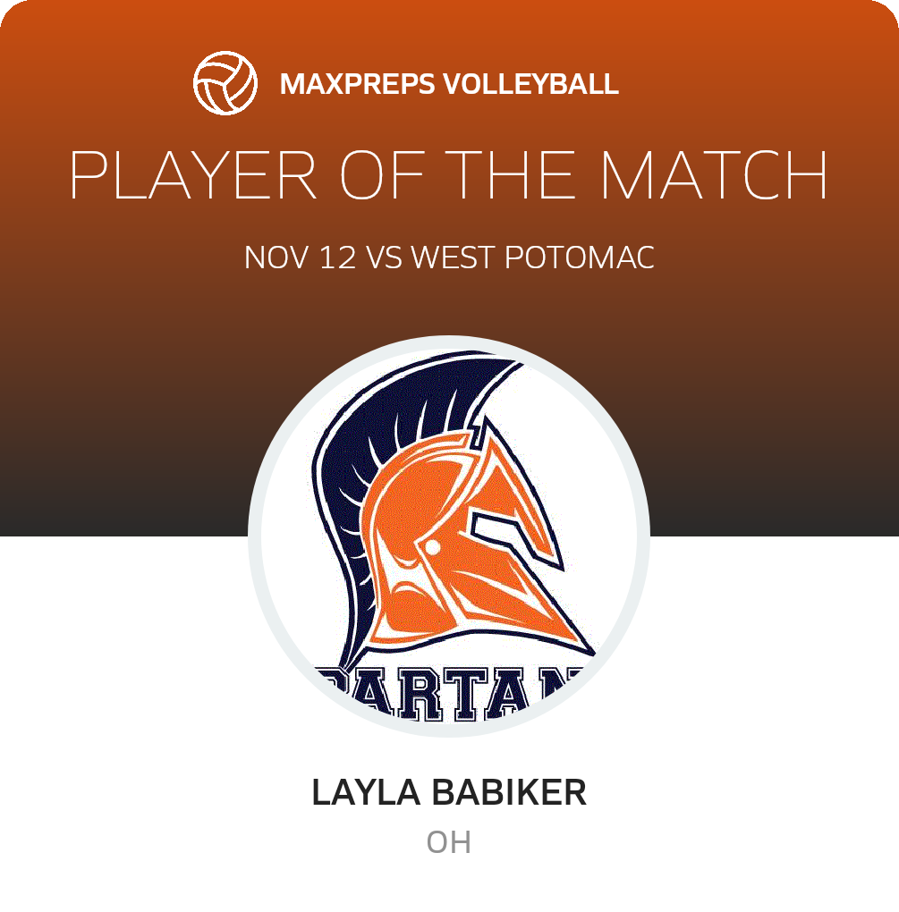 November 12, 2025: Springfield, VA 22152 In Wednesday's non-league match, the West Springfield Spartans (Springfield, VA) volleyball squad overcame the visiting West Potomac Wolverines (Alexandria, VA), by a count of 3-0.
