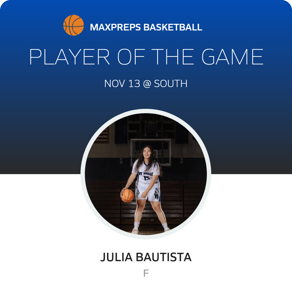 Congratulations to #15 Julia Bautista for being selected the Bakersfield Girls Basketball Player of the Game.