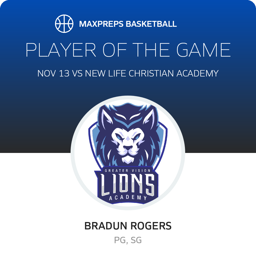 Congratulations to #4 Bradun Rogers for being selected the Greater Vision Academy Basketball Player of the Game.
