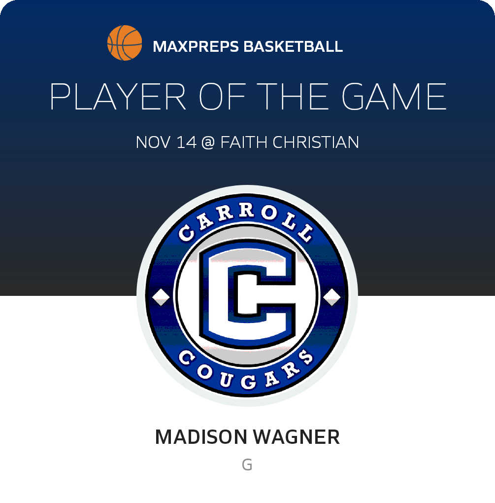 November 14, 2022: Lafayette, IN 47905 In Monday's non-league outing, the Carroll Cougars (Flora, IN) basketball squad overwhelmed the host Faith Christian Eagles (Lafayette, IN), by a margin of 73-50.