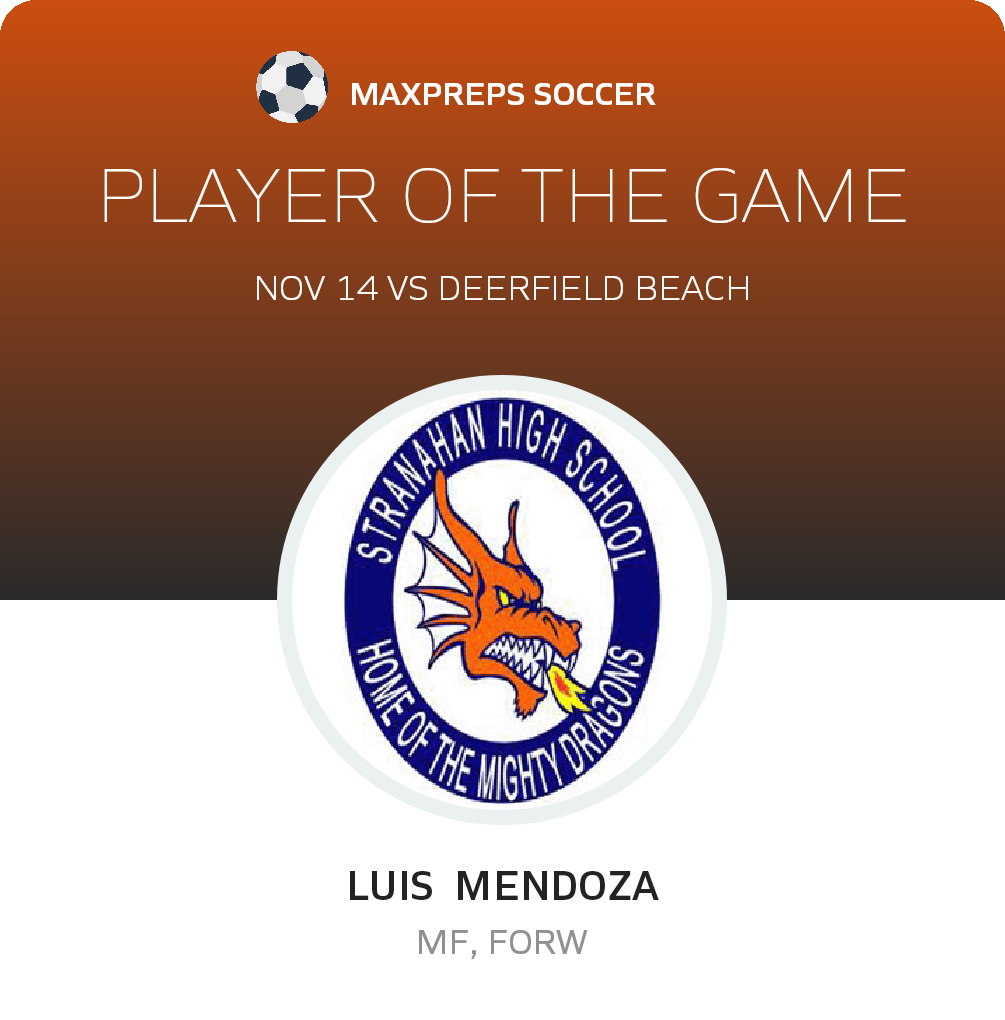 Congratulations to #10 Luis Mendoza for being selected the Stranahan Soccer Player of the Match.