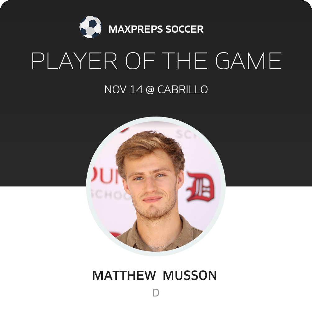 Congratulations to #30 Matthew Musson for being selected the Dunn Soccer Player of the Match.