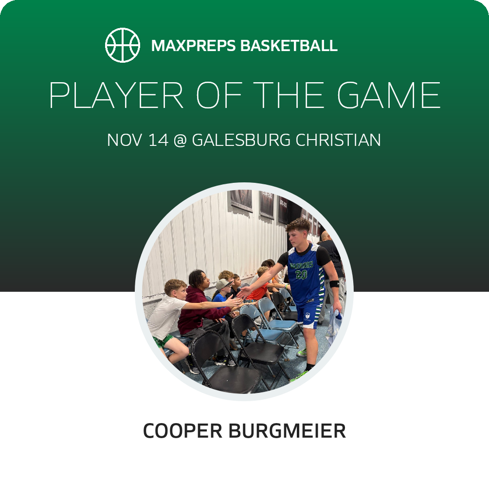Congratulations to #20 Cooper Burgmeier for being selected the Coram Deo Academy Basketball Player of the Game.