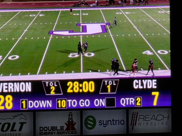 The Vernon (TX) varsity football team won Friday's neutral playoff game against Clyde (TX) by a score of 42-14.