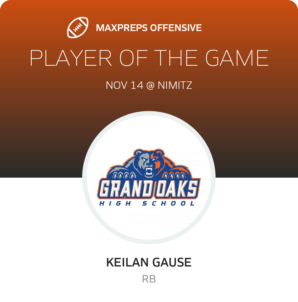 The Grizzlies now hold a 8-3 record. They take the field next when they travel to Cypress Ranch for a non-league challenge on Friday, November 21. Grand Oaks will face a Mustangs team coming off a 40-24 non-league win over Klein (Klein, TX). The Mustangs record now stands at 9-2.