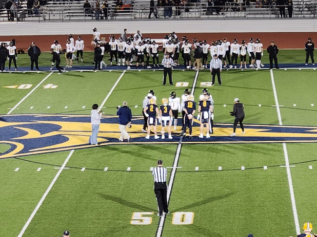 November 14, 2025: Portage, MI 49002 The Portage Central Mustangs (Portage, MI) football tipped the visiting Traverse City Central Trojans (Traverse City, MI), 24-20 in Friday's non-league outing.